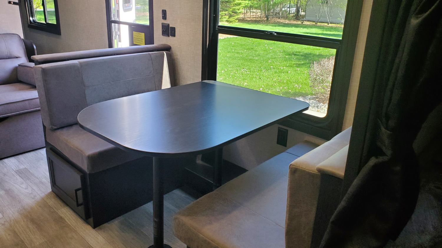 A dinette table with 2 benches makes into a bed (for 1 or a close 2)