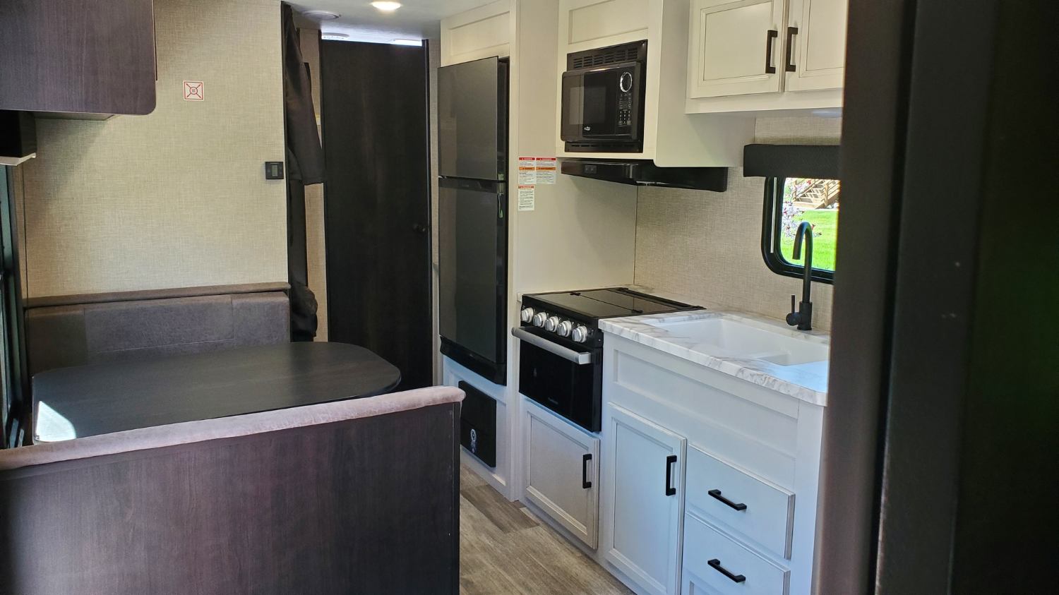 A dinette table with 2 benches makes into a bed (for 1 or a close 2)